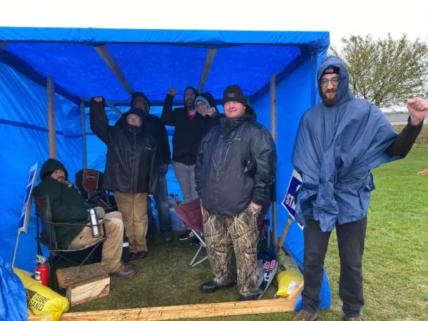 Nathan Kieso (AFSCME 1954) and Tracey Schwerdtfeger (WFNHP 5000), leaders from the MALC Board and the Young Workers Committee, led 2 days of solidarity actions to support John Deere workers currently on strike across the Midwest. They were able to deliver a donation of food from IBEW 494 and to walk the picket line in Waterloo, Iowa over 2 blustery days last week. In addition, the Milwaukee Area Labor Council sent a $200 donation to The Support the Strike Fund.